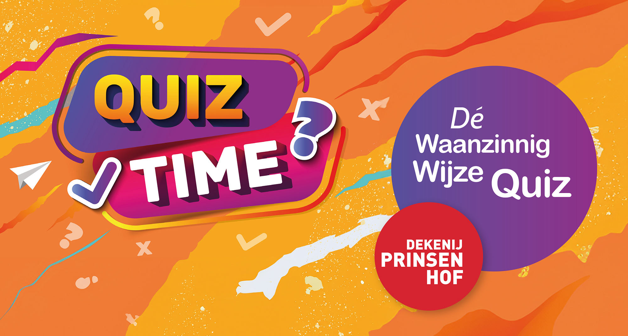 Weet jij en je team iets over actualiteit, media, cultuur, sport, muziek, … en zijn jullie ook nog eens handig in een paar doe-proeven? Dan is dit dé quiz voor jullie! Verwacht een mix van De Slimste Mens, Switch en Blokken. Ambiance verzekerd, want we houden het vooral plezant. En iedereen gaat naar huis met een prijs. Hoe geweldig is dat?